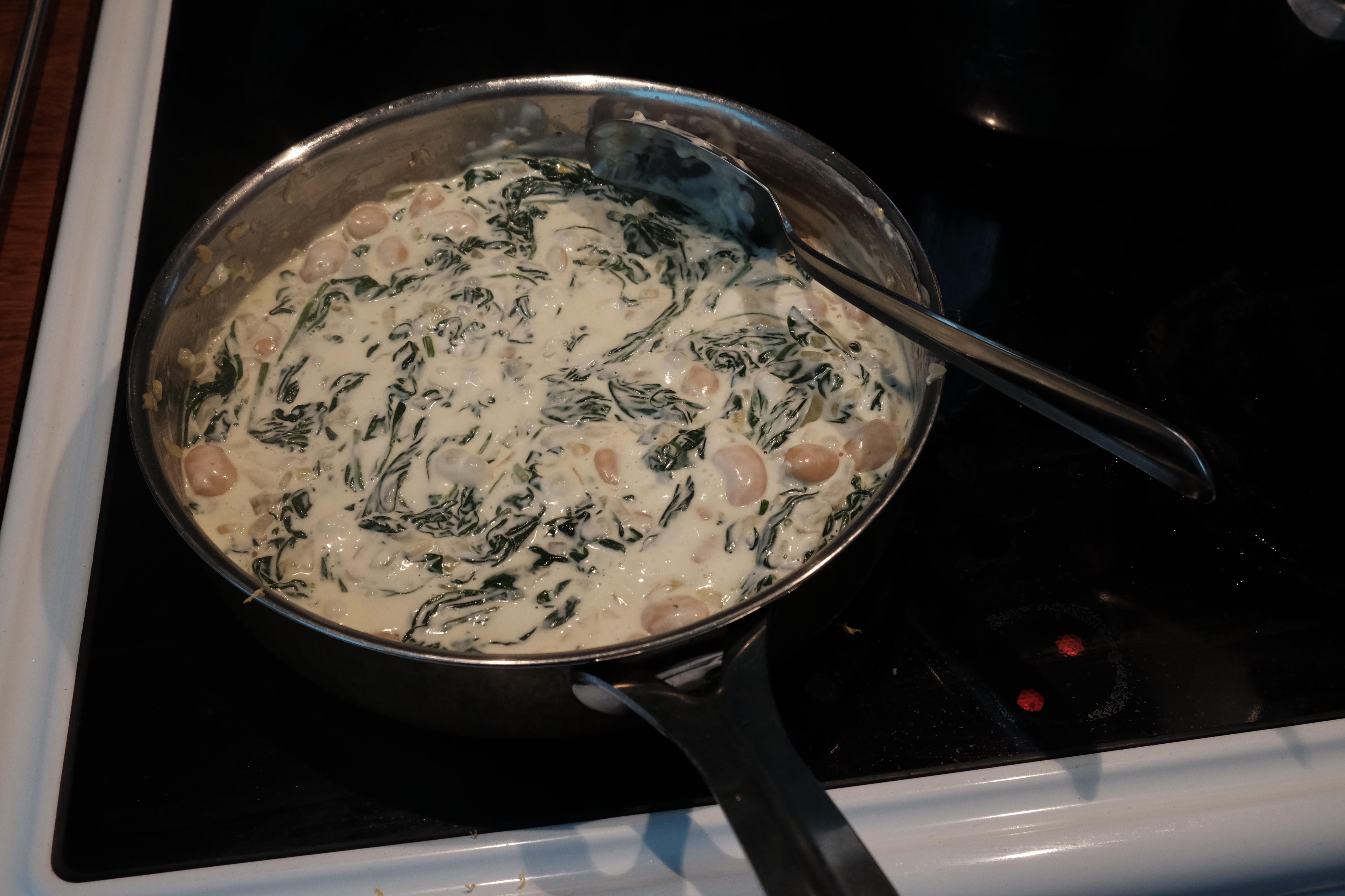 Add the white beans, lemon juice and mascarpone cheese and cook until the cheese has dissolved. At this stage you can add some of your saved pasta water if the sauce is to thick. I always do this before adding salt to my pasta sauce because the water is quite salty and there is nothing worse than overly salted food (except war and inequality maybe).