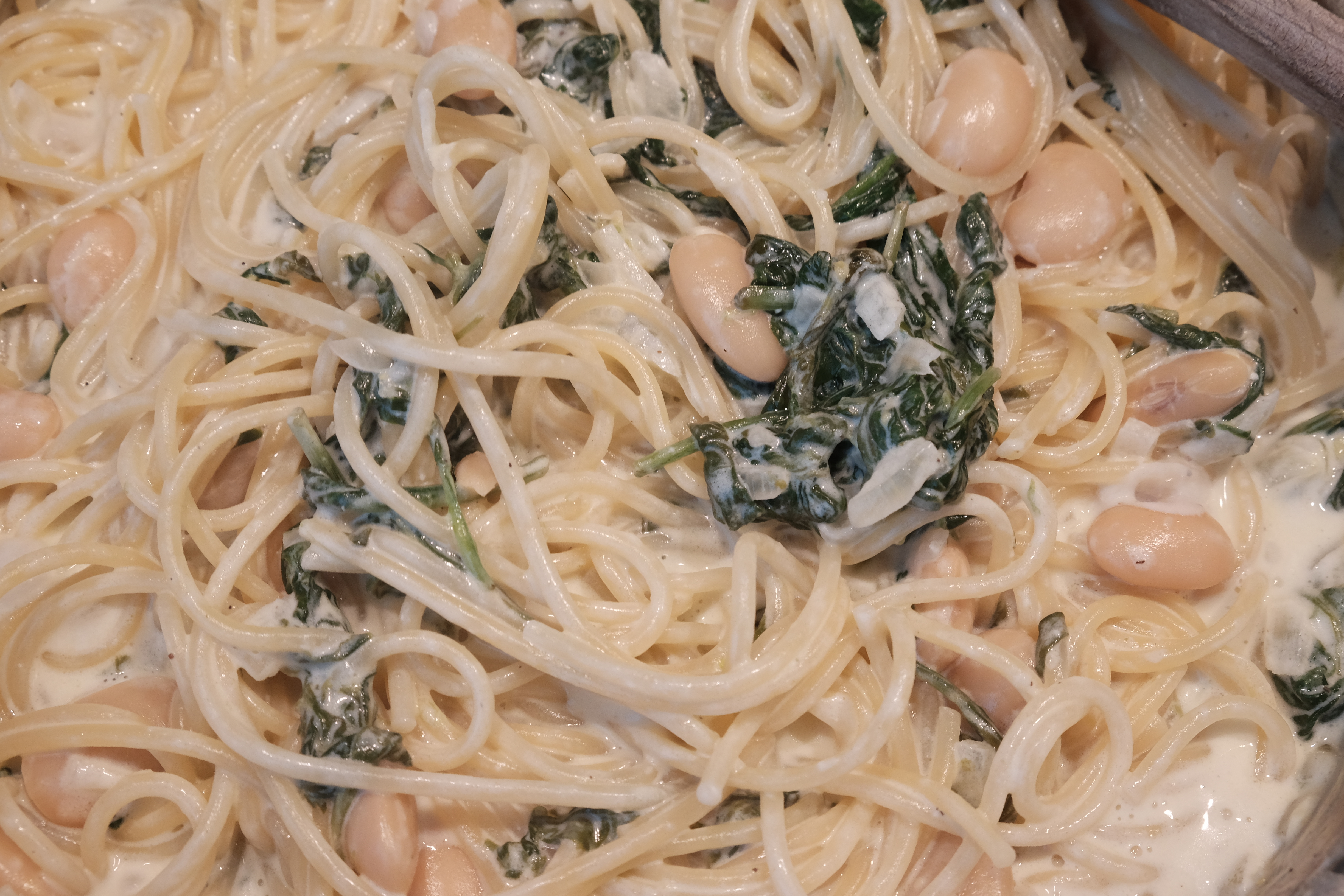 If you’ve met anyone from Sweden and just so happened to come across them when they are hungry, you would know that nine times out of ten we opt for Italian food. Swedes love almost everything about Italy but it is our love of their food that we hold the highest. This time I opted for a dish that’s loosely inspired by a carbonara, but without any meat or cream in the apartment and being to lazy to go to the shop I switched them out for large white beans and mascarpone cheese.